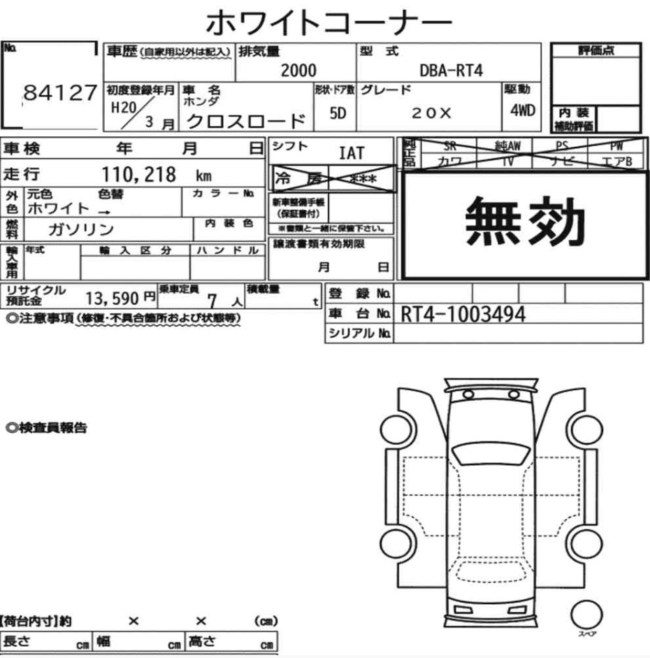 Автомобиль на разбор Honda Cross Road RT4 R20A 2008 года