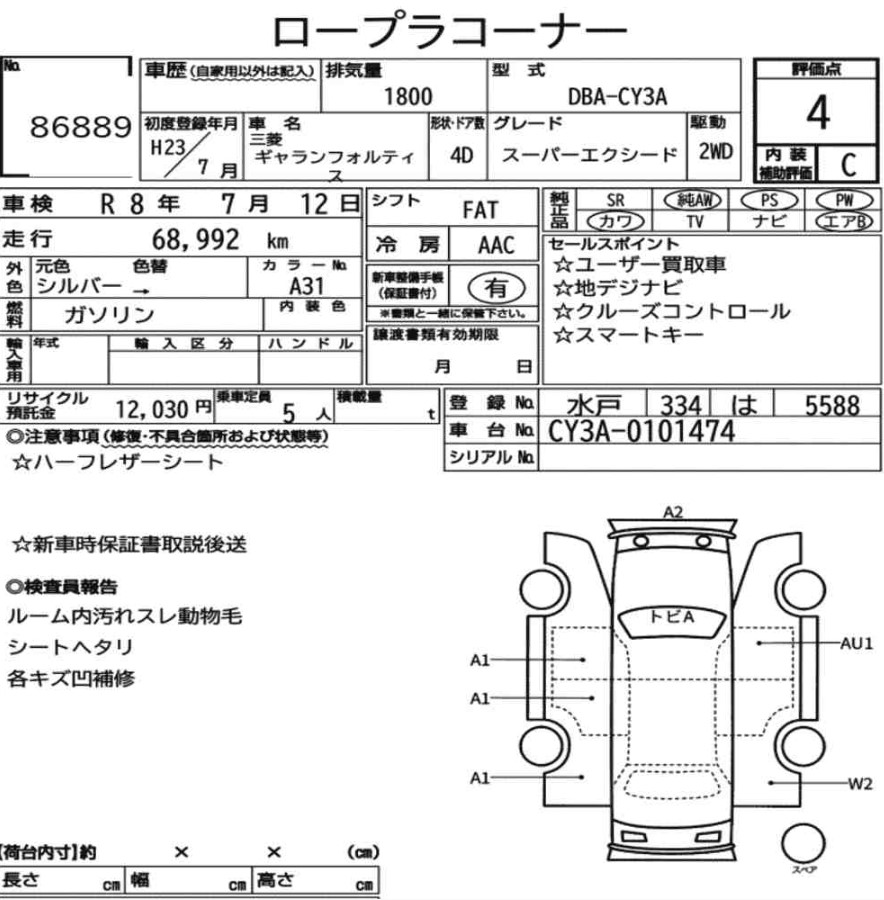 Автомобиль на разбор Mitsubishi Galant Fortis CY3A 4B10 2011 года