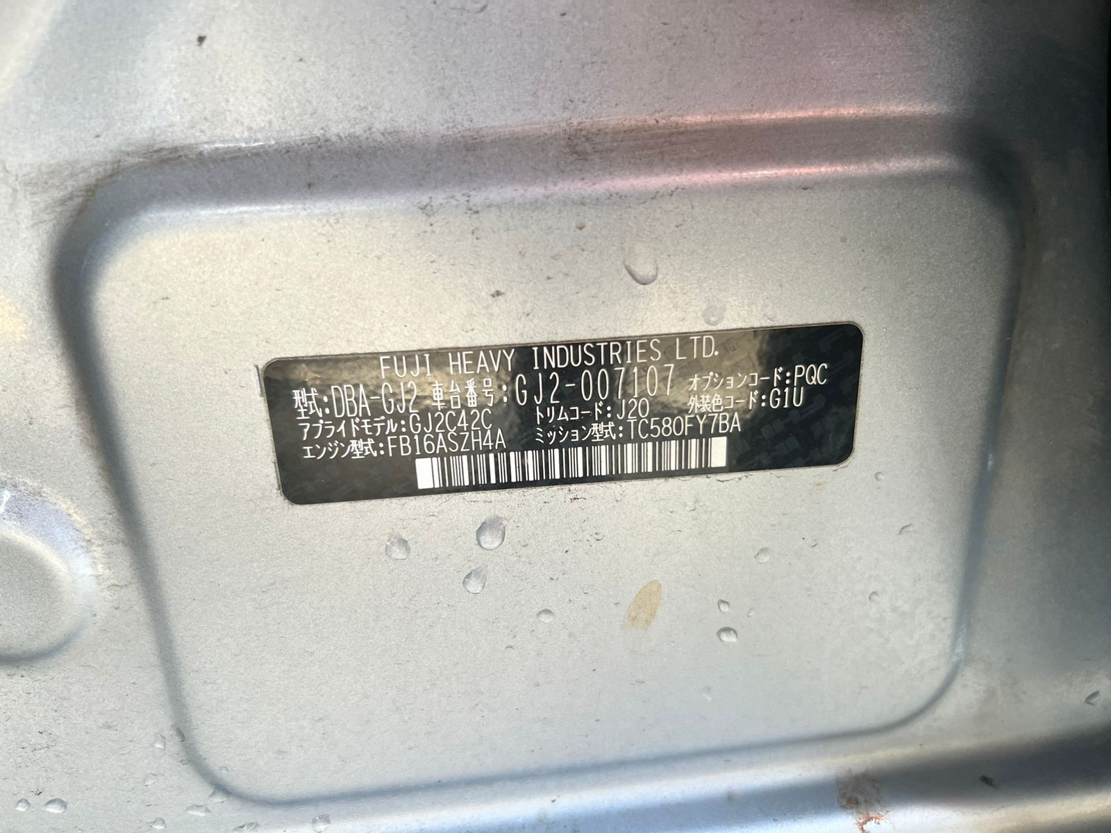 Данные автомобиля: Subaru Impreza GJ2 FB16 2014