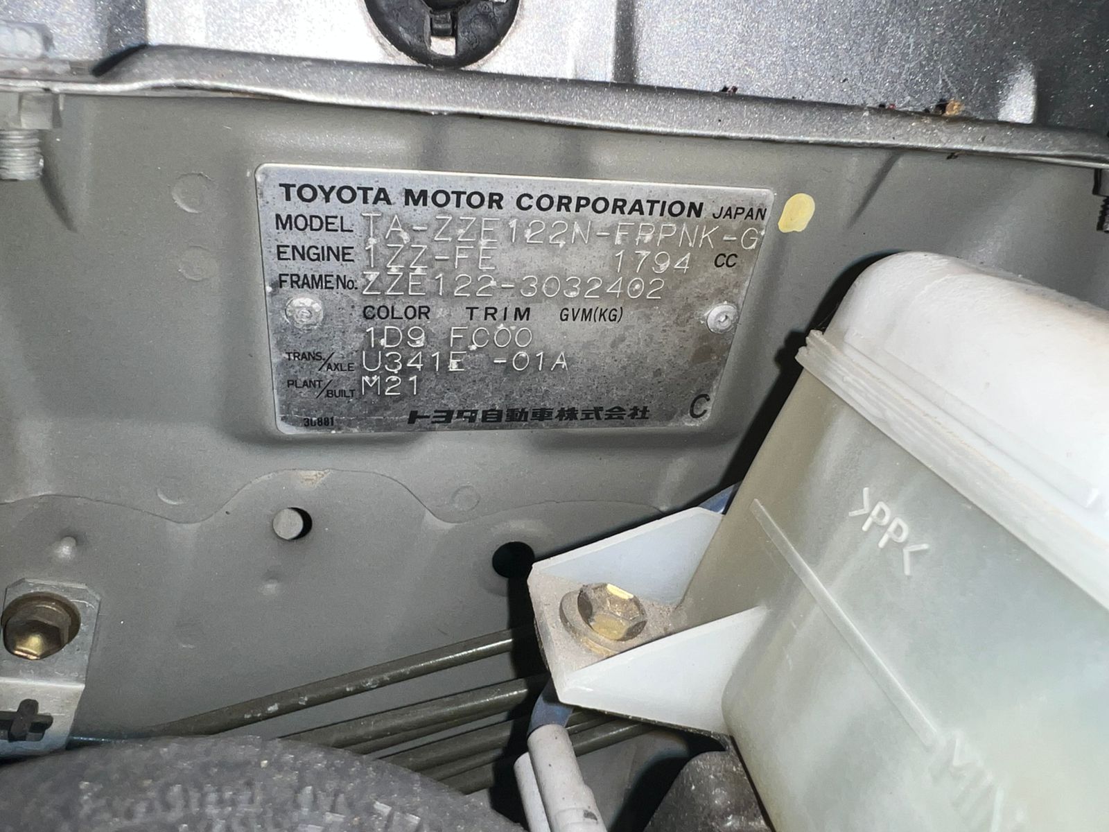 Данные автомобиля: Toyota Corolla Spacio ZZE122N 1ZZ-FE 2002