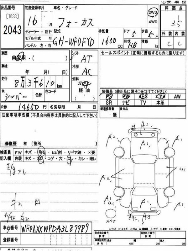 Данные автомобиля: Ford Focus 1 DNW,MK1 FYDA1U 2001