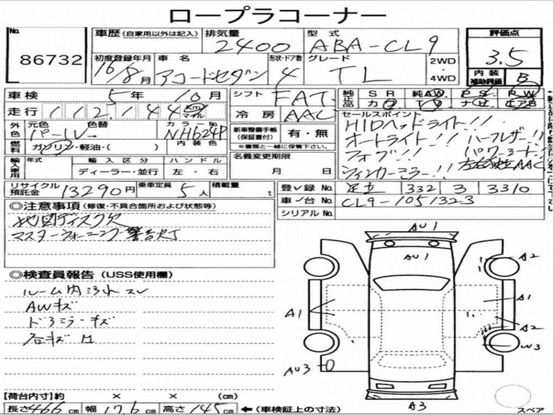 Данные автомобиля: Honda Accord CL7 K20A 2005