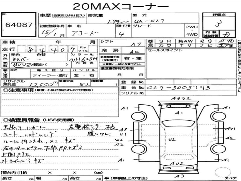 Данные автомобиля: Honda Accord CL7 K20A 2003