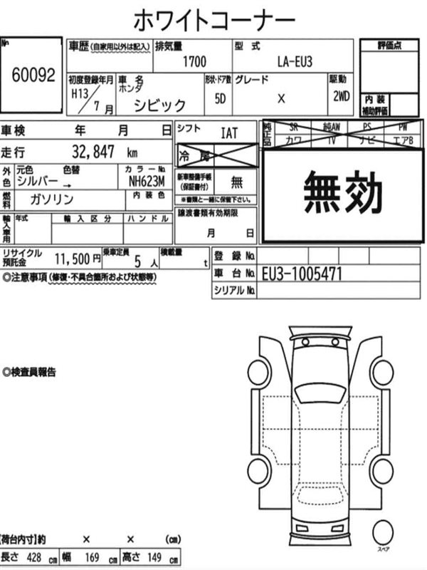 Данные автомобиля: Honda Civic EU1 D15B 2001