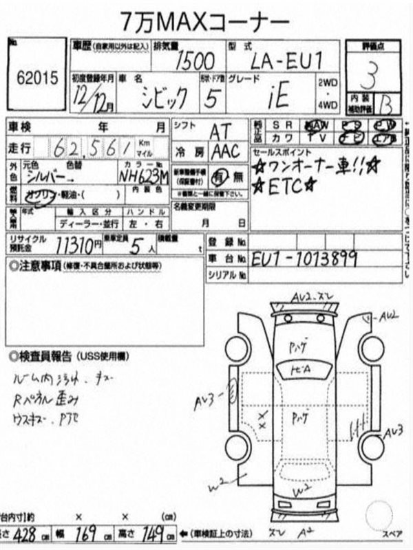 Данные автомобиля: Honda Civic EU1 D15B 2001
