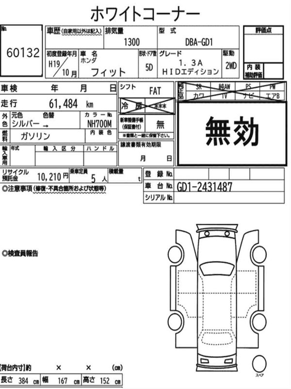 Данные автомобиля: Honda Fit GD1 L13A 2007