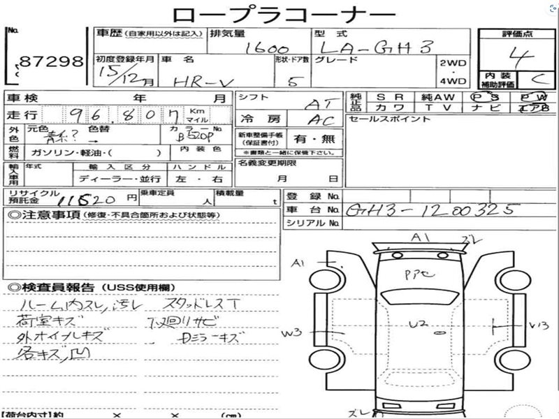 Данные автомобиля: Honda HR-V GH3 D16A 2000