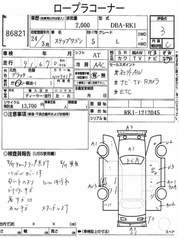 Данные автомобиля: Honda Step Wagon RK1 R20A 2012