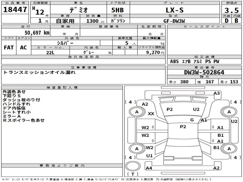 Данные автомобиля: Mazda Demio DW3W B3E 2001
