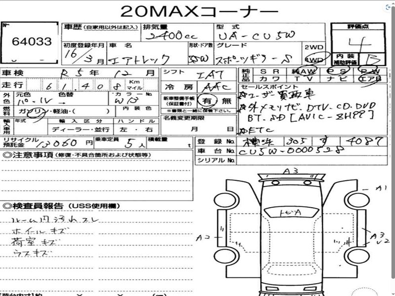Данные автомобиля: Mitsubishi Airtrek CU5W 4G69 2005