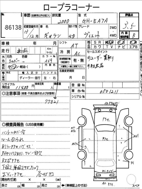 Данные автомобиля: Mitsubishi Galant EA3A 4G64 2001
