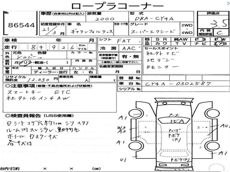 Данные автомобиля: Mitsubishi Lancer X/galant Fortis CY4A 4B11 2008