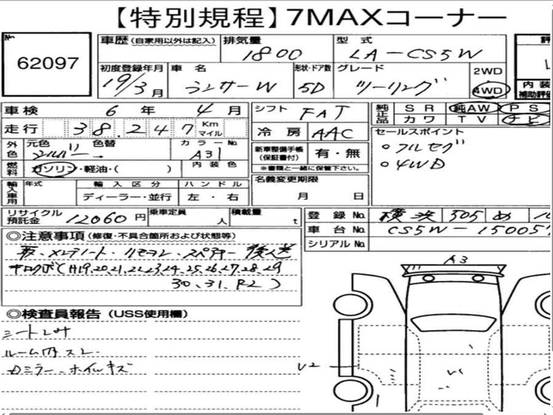 Данные автомобиля: Mitsubishi Lancer CS2A 4G15 2004