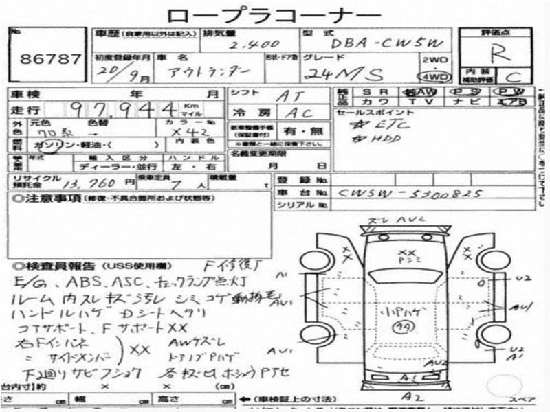 Данные автомобиля: Mitsubishi Outlander CW6W 6B31 2008