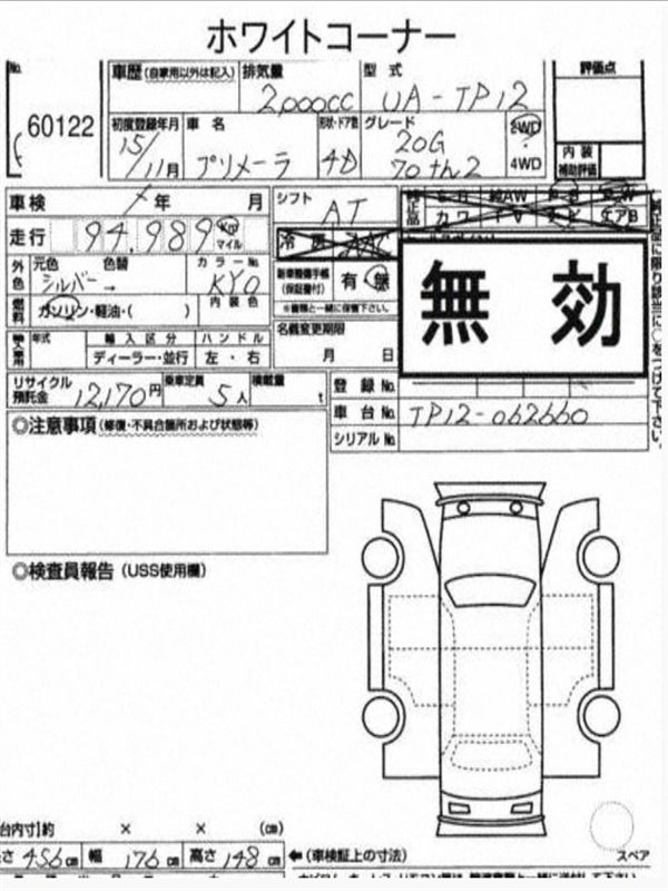 Данные автомобиля: Nissan Primera TNP12 QR20DE 2005
