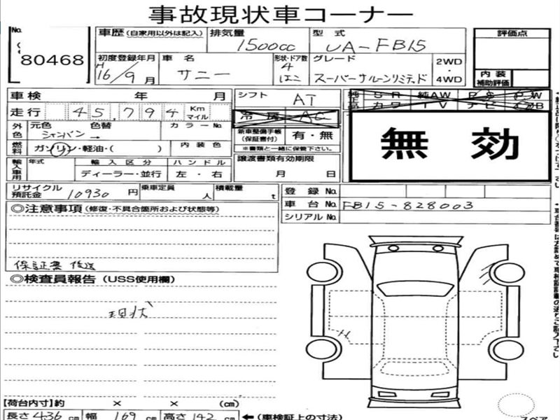 Данные автомобиля: Nissan Sunny FB15 QG15DE 2004