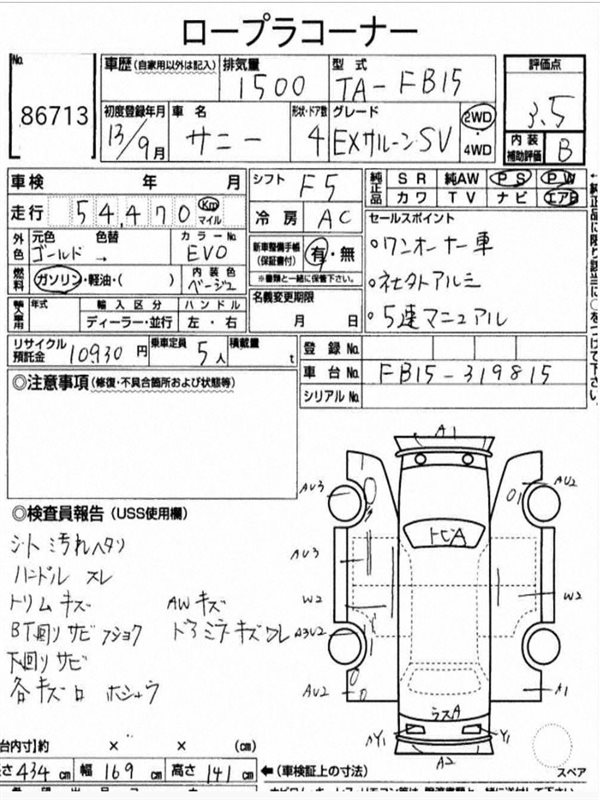 Данные автомобиля: Nissan Sunny FB15 QG15DE 2001