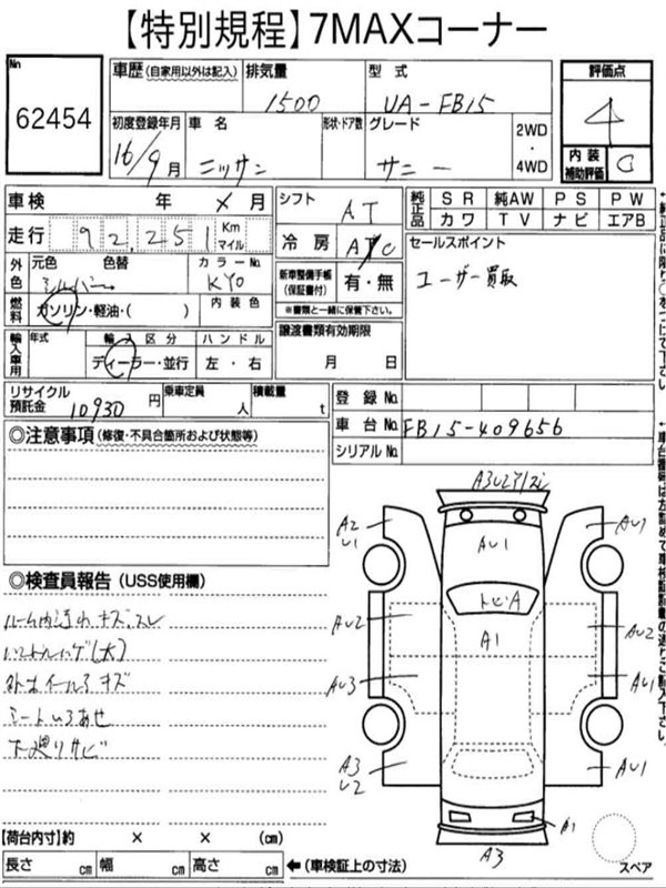 Данные автомобиля: Nissan Sunny FB15 QG15DE 2000
