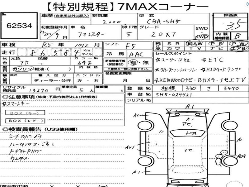 Данные автомобиля: Subaru Forester SJ5 FB20A 2013