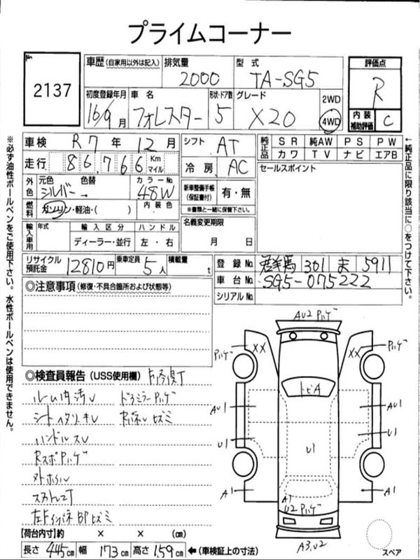 Данные автомобиля: Subaru Forester SJ5 FB20A 2013