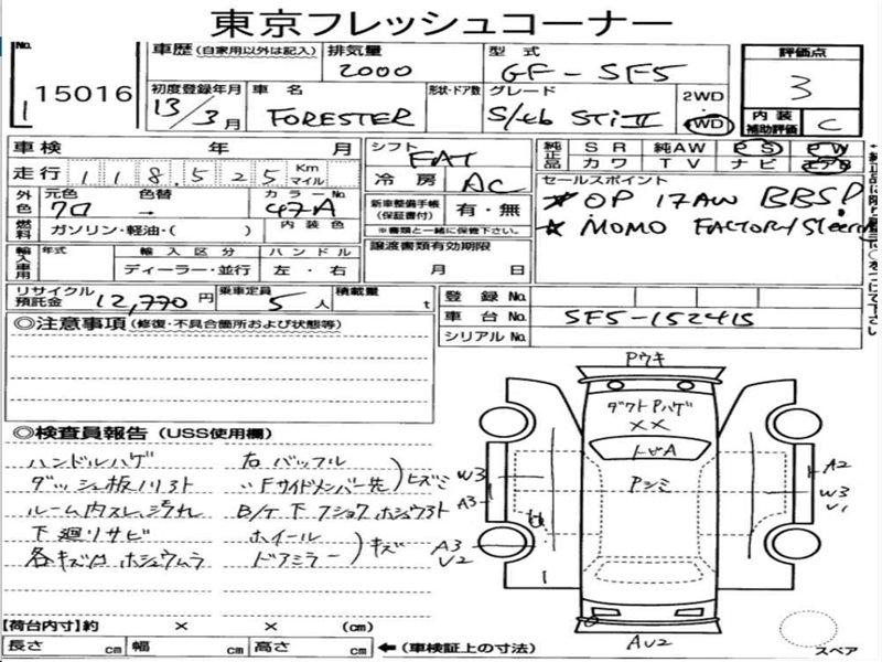 Данные автомобиля: Subaru Forester SG5 EJ202 2003