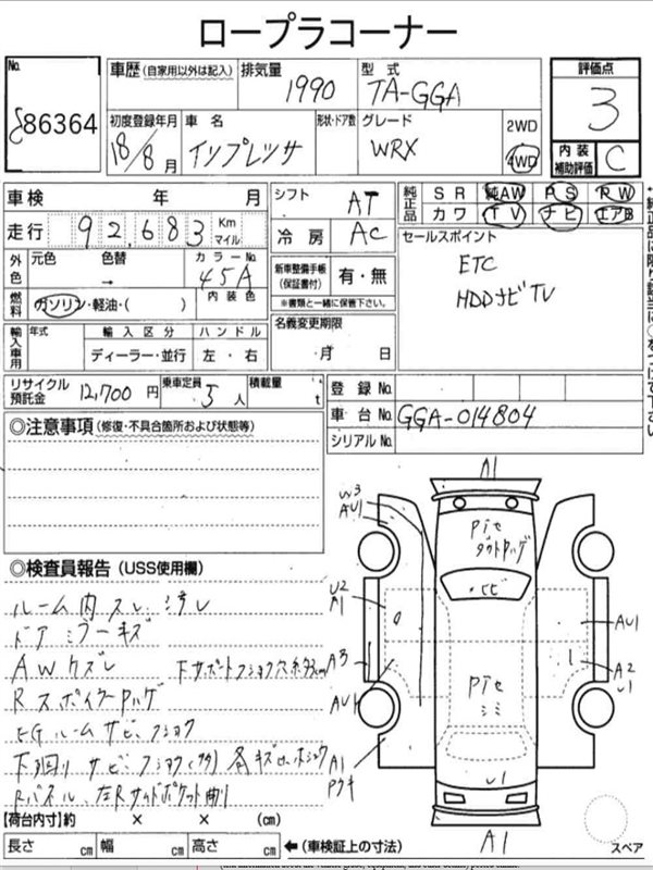 Данные автомобиля: Subaru Impreza Wrx GGA EJ205 2004