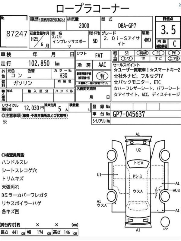 Данные автомобиля: Subaru Impreza GP7 FB20A 2012