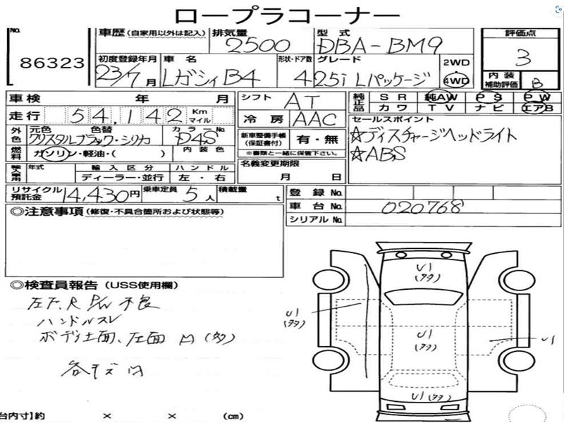 Данные автомобиля: Subaru Legacy B4 BLE EZ30D 2007
