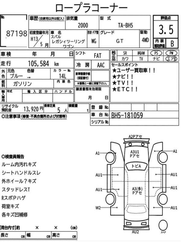 Данные автомобиля: Subaru Legacy BH5 EJ202 2003