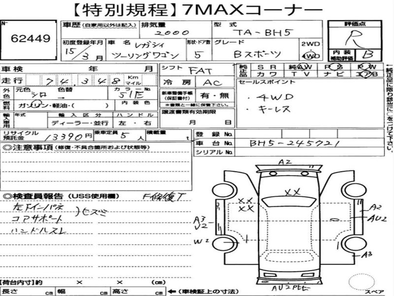 Данные автомобиля: Subaru Legacy BH9 EJ254 2002