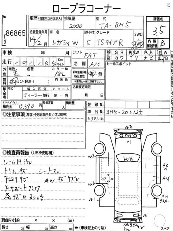 Данные автомобиля: Subaru Legacy BH9 EJ254 2001