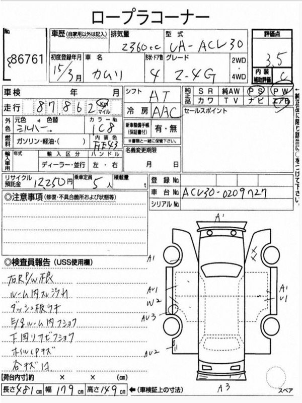 Данные автомобиля: Toyota Camry ACV45 2AZ-FE 2008