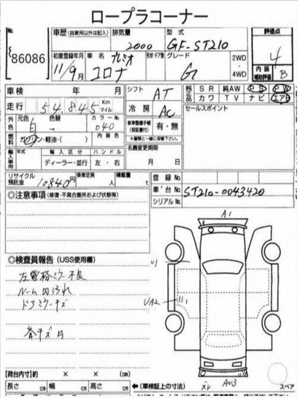 Данные автомобиля: Toyota Corona Premio ST215 3S-FE 2001