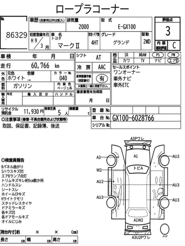 Данные автомобиля: Toyota Mark 2 GX100 1G-FE 1997