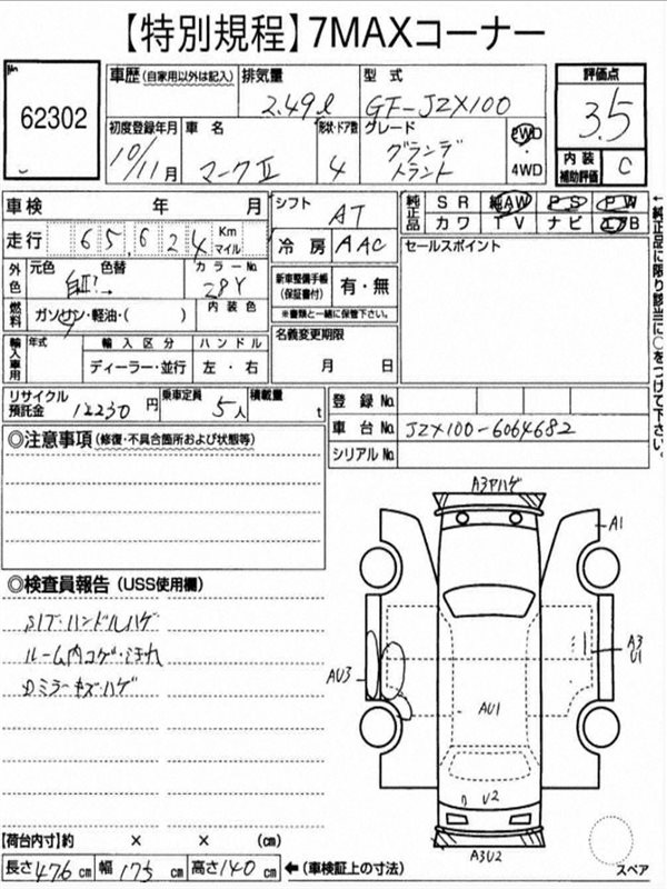 Данные автомобиля: Toyota Mark 2 JZX100 1JZ-GE 1998