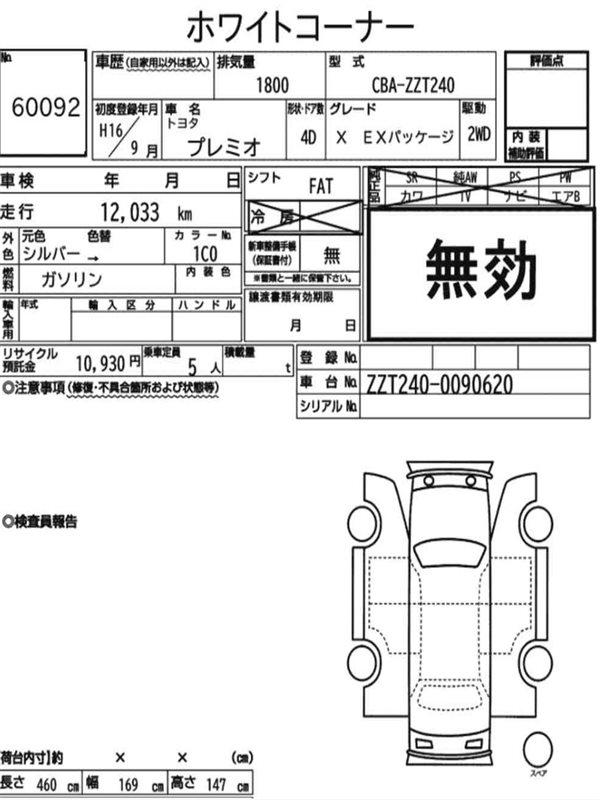 Данные автомобиля: Toyota Premio ZZT240 1ZZ-FE 2004
